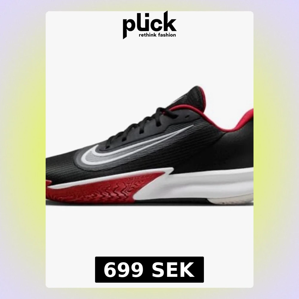 Snygga svarta Nike sneakers med vit swoosh och röda detaljer på insidan och sulan. Skon har en låg profil och ovandelen är i textilmaterial med klassiska svarta skosnören. Perfekt för dig som gillar sportig och stilren design.