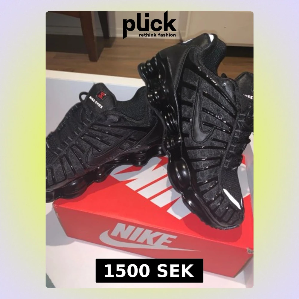 Nike Shox TL sneakers i helsvart med ikoniska fjädrande sulor och mesh- och syntetöverdel. Swoosh-logga på sidan och Shox-detaljer på plösen. Skorna har en sportig vibe och cool design med vita accenter på tån och plösen.