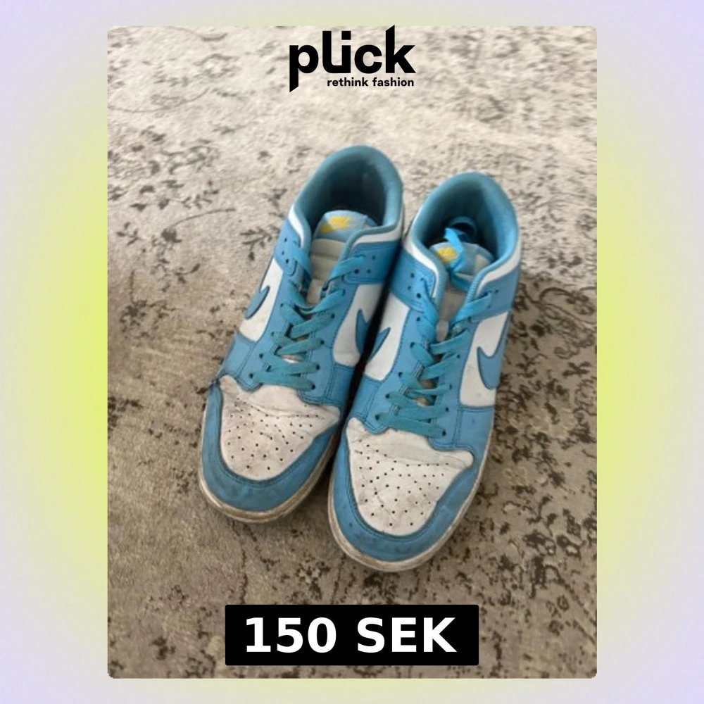Snygga Nike Dunk Low sneakers i blått och vitt med klassisk swoosh på sidan. Skorna har perforerad tåbox, vita paneler och blå detaljer samt matchande blå skosnören. Ovandelen är i läder och innerfodret är mjukt för extra komfort.