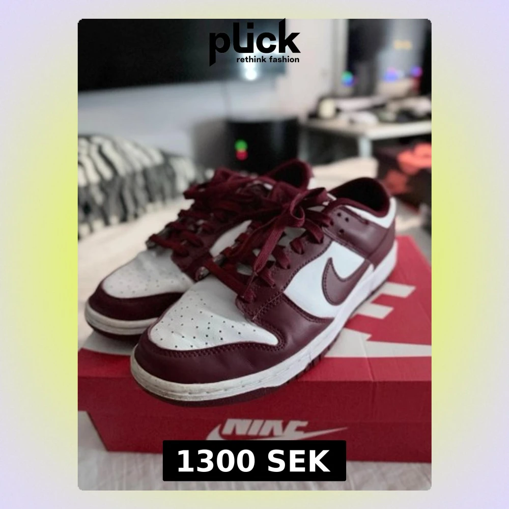 Snygga Nike Dunk Low sneakers i färgen Bordeaux och vitt. Skorna har klassisk låg siluett, vit tåbox och sidor med vinröda detaljer och swoosh. Tillverkade i läder med matchande vinröda skosnören och vit yttersula. Perfekta för dig som gillar streetwear och stilrena färgkombinationer.