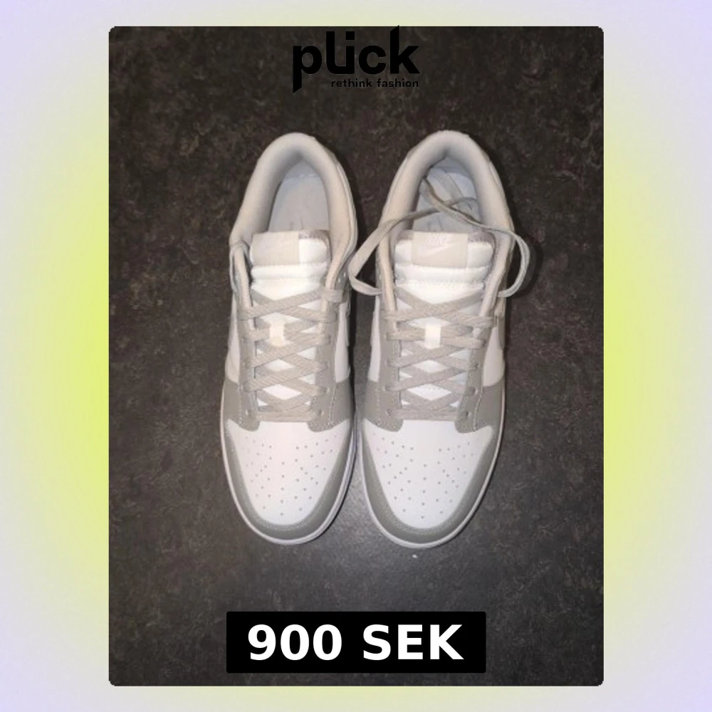 Snygga Nike Dunk Low sneakers i vitt och ljusgrått läder. Klassisk siluett med perforerad tåbox, vita paneler och grå detaljer på sula, snörning och Swoosh. Perfekta för dig som gillar stilrena och trendiga sneakers.