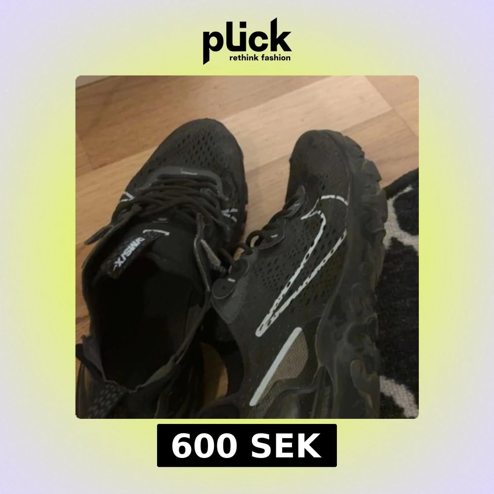 Säljer ett par svarta sneakers från JX VSN med vit detalj på sidan och grov sula. Skorna har snörning och meshpaneler för extra ventilation. Perfekta för dig som vill ha en sportig och stilren look.