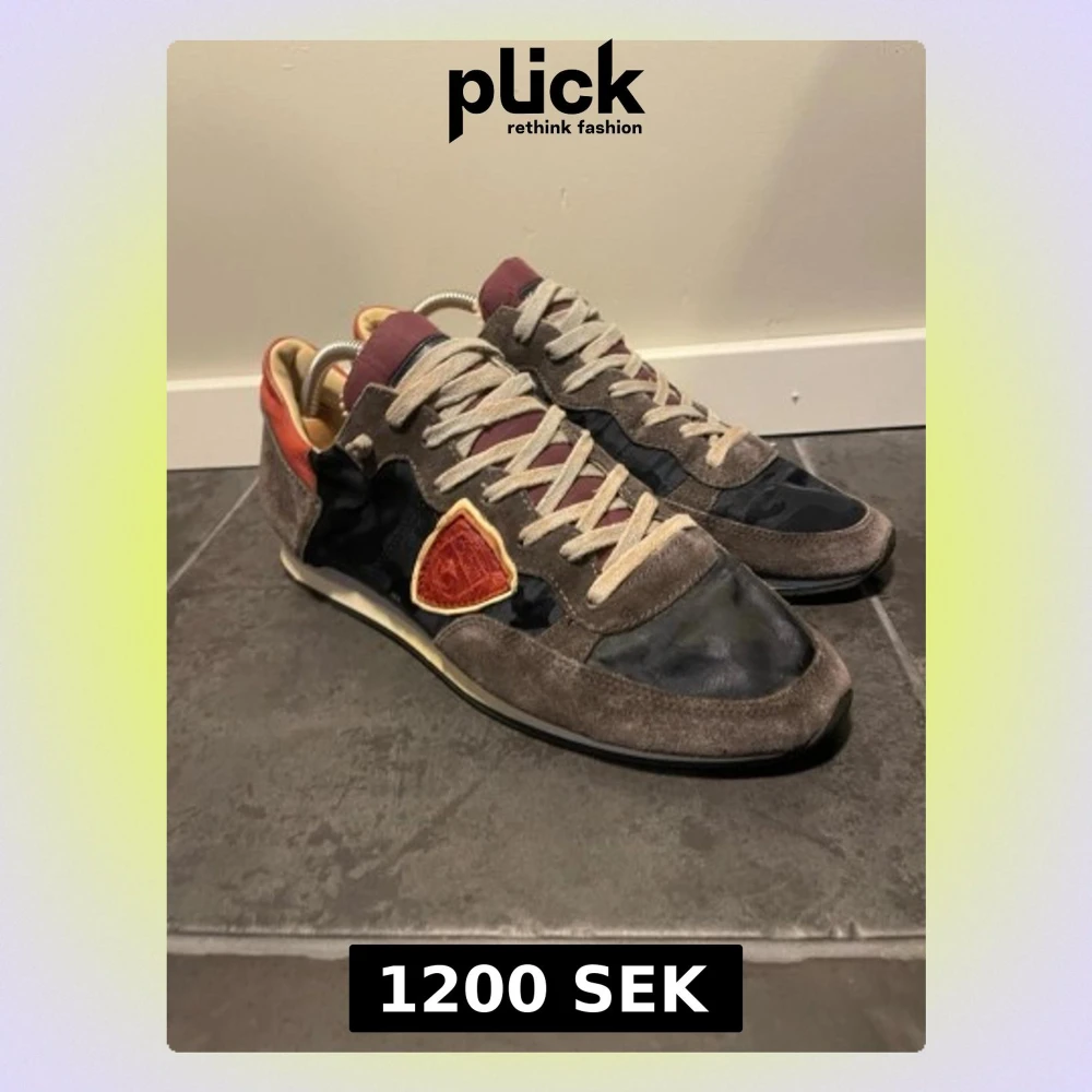 Snygga sneakers från Philippe Model i grå mocka och svart textil med vinröda och orange detaljer. Skorna har beige snören och en låg siluett. Klassisk logga på sidan och bekväm innersula. Perfekta för dig som gillar streetstyle och unika detaljer.