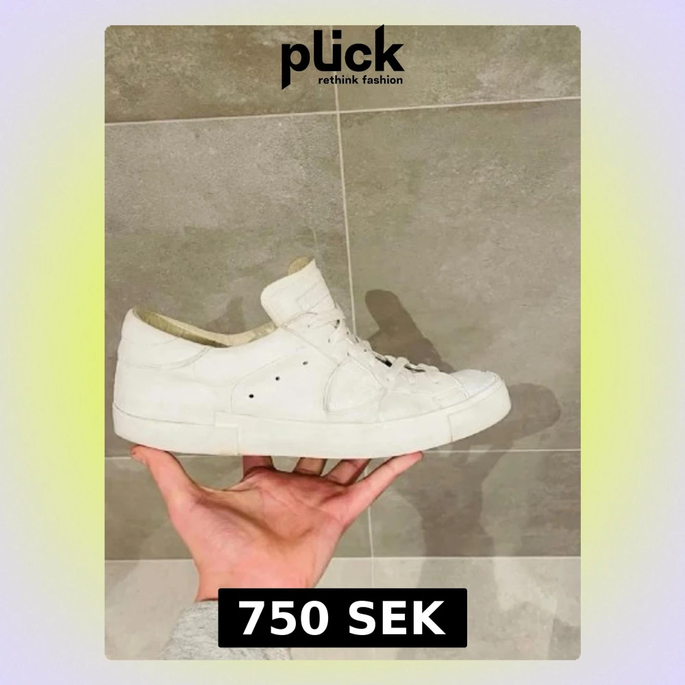 Stilrena vita sneakers från Philippe Model med klassisk låg siluett. Skorna har vita snören, diskreta sömmar och perforerade detaljer på sidan. Tillverkade i läder med en bekväm innersula och robust yttersula. Perfekta för en clean och modern look.