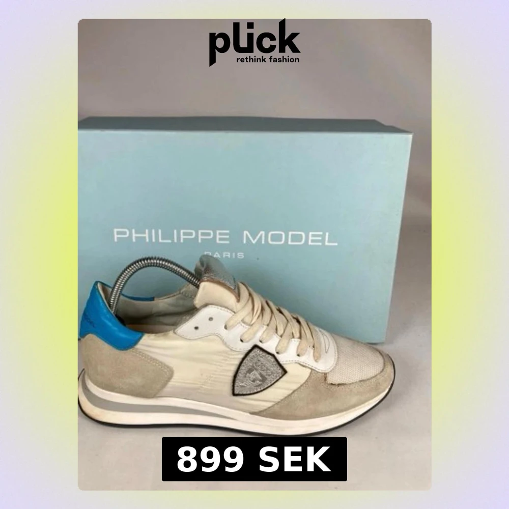 Snygga sneakers från Philippe Model i beige och vitt med detaljer i silver och blått. Skorna har snörning, mocka- och skinnpaneler samt en klassisk sportig siluett. Perfekta för dig som vill ha en stilren men unik sneaker.