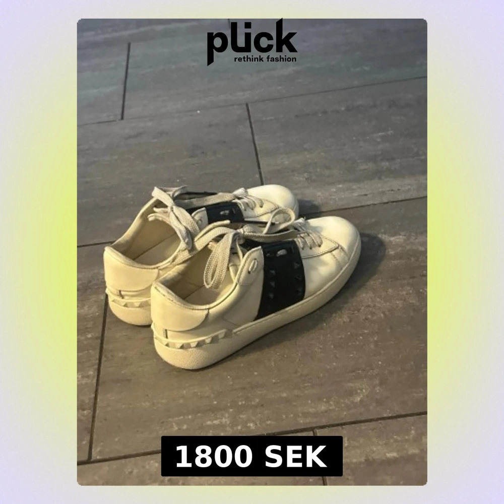 Säljer ett par vita sneakers från Valentino med svarta nitar på sidan. Skorna är i mycket fint skick. Säljer skorna då gör vi testa något nytt och då kan det vara bra att skorna kommer till användning för någon annan. hör av dig av minsta intresse. Priset går att diskuteras. Box och allt tillkommer också.