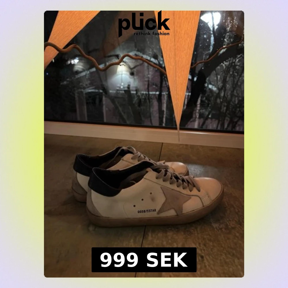 Ett par skitsnygga golden goose skor i vitt läder. Box samt distans följer med! Skorna är använda i 1,5 månader så rätt så bra skick. Färgen har släppt lite så jag använde lite sulkräm för att fixa ihop. Skorna är storlek 43 och sitter true to size. Hör av er om frågor!🙌
