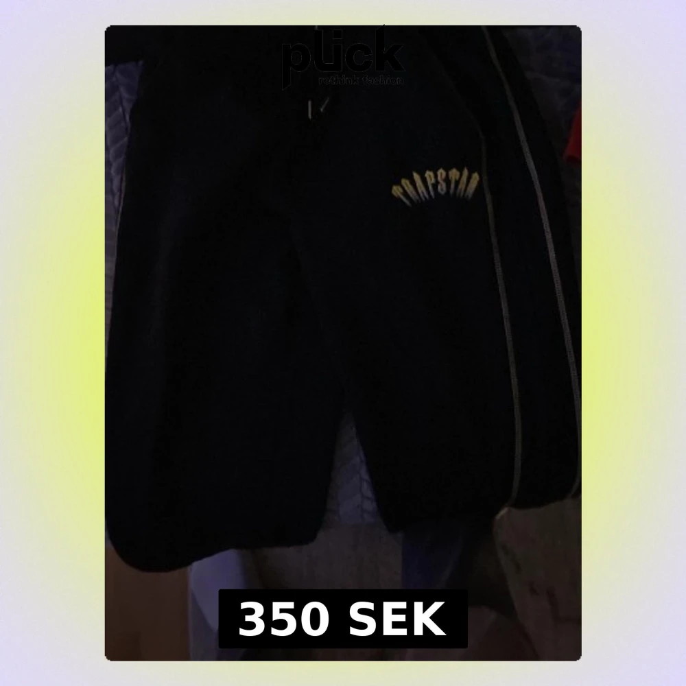 Svarta mjukisbyxor från Trapstar med gul logga på ena benet och vita detaljer längs sidorna. Byxorna har dragsko i midjan och muddar vid bensluten. Perfekta för en avslappnad och trendig look.
