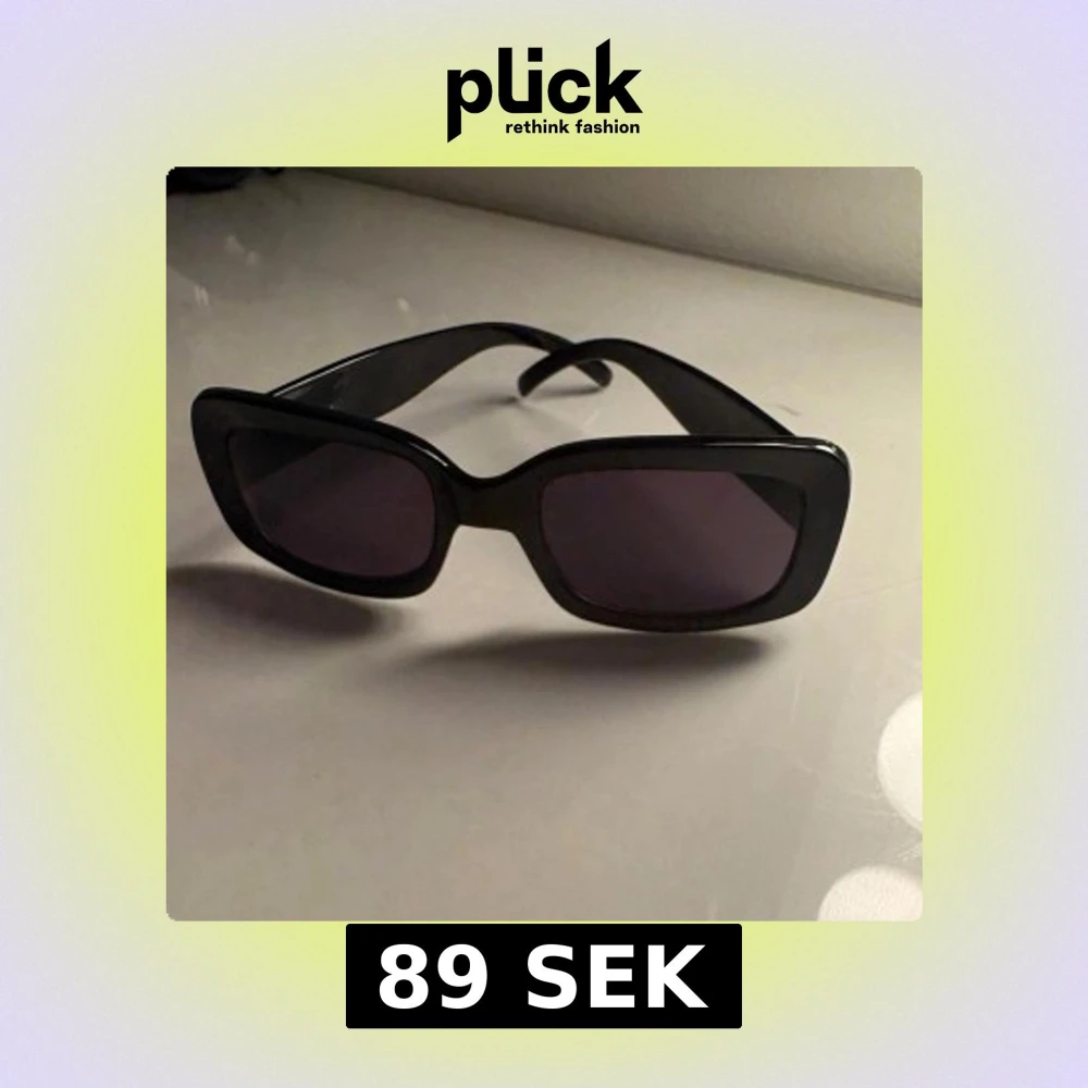 Snygga svarta solglasögon med rektangulära bågar och mörka glas. De har en stilren och trendig design som passar perfekt till alla outfits. Bågarna är i plast och ger en y2k vibe. Vet ej vart de är köpta, mormors gamla