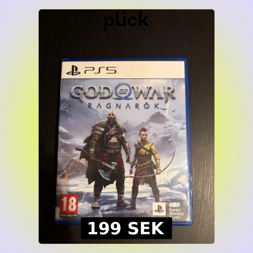 God of War Ragnarök till PlayStation 5. Blå plastfodral med omslag i grått och blått, visar Kratos och Atreus i ett snöigt landskap. Actionäventyr med nordisk mytologi, PEGI 18. Perfekt för dig som gillar episka spelupplevelser. Pris kan diskuteras.