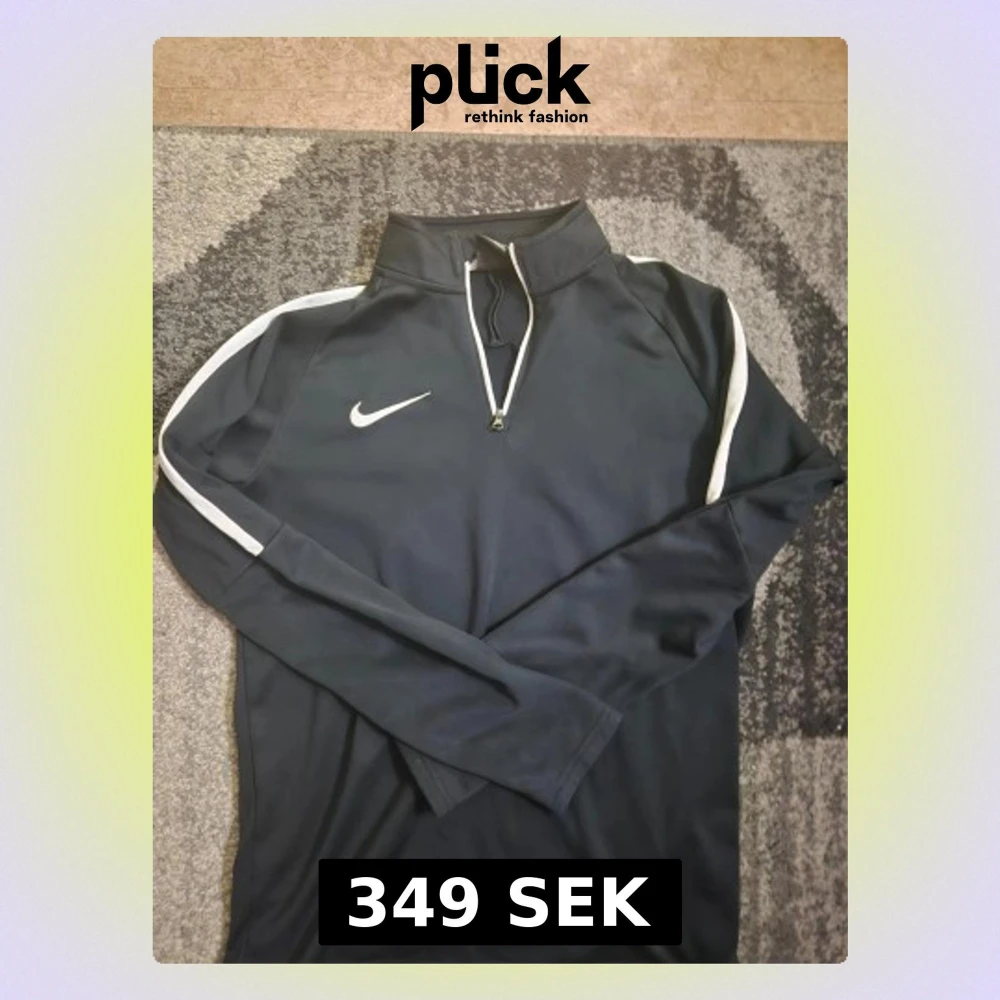 Snygg svart långärmad träningströja från Nike med vit logga på bröstet och vita ränder längs ärmarna. Tröjan har hög krage och halv dragkedja framtill. Perfekt för träning eller uppvärmning. Tillverkad i ett mjukt och stretchigt funktionsmaterial.