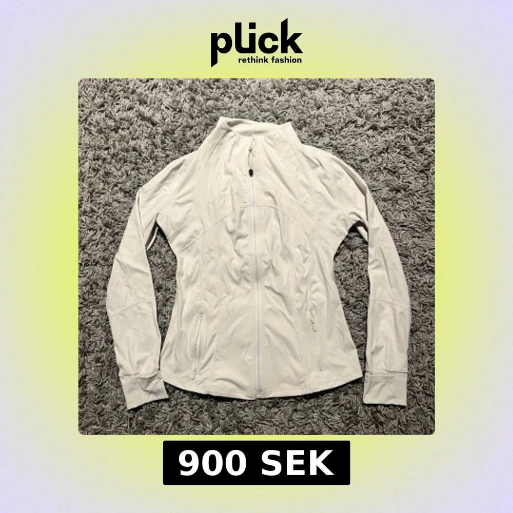Define träningsjacka från lululemon. Jacka är i storlek 8 vilket passar någon som bär storlek S. Den är i bra skick. Priset är ej hugget i sten!