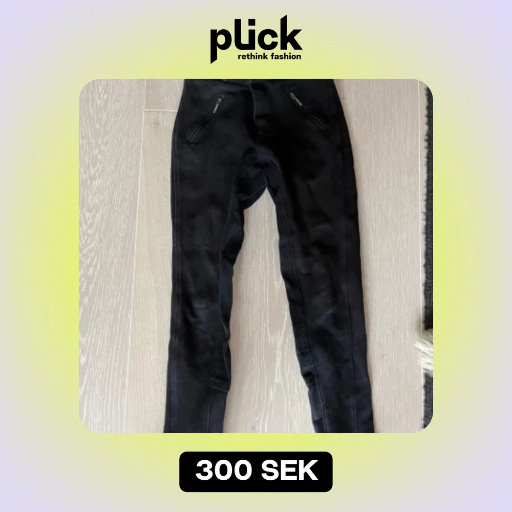 Säljer ett par svarta ridbyxor från Horze i storlek 160. De har dragkedjor vid fickorna och en knapp i midjan.
