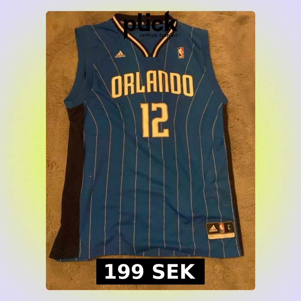 Bilderna visar en blå Orlando Magic baskettröja från Adidas med nummer 12 och namnet Howard, storlek L.