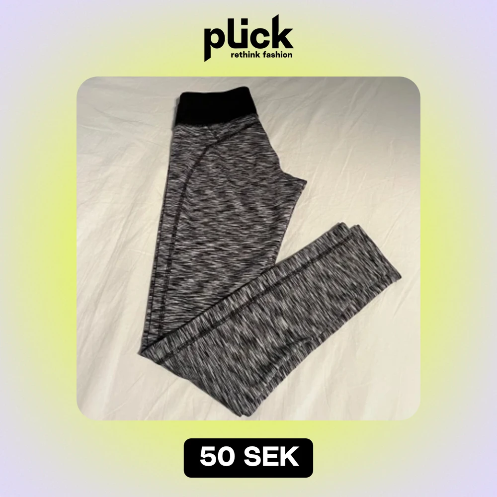 Ett par grå och svarta leggings från SOC med ett mönster i grått och svart. Leggingsen har en hög midja och är tillverkade i ett stretchigt material som passar bra för träning.