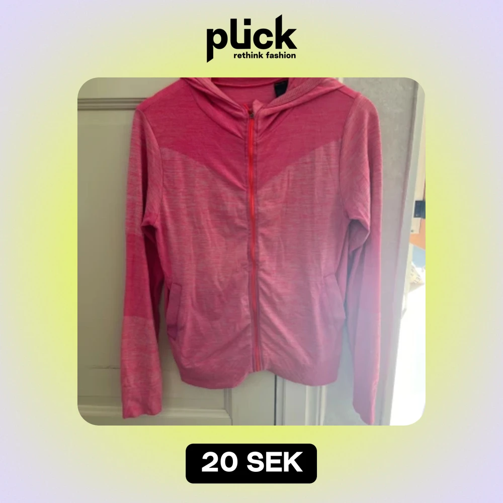 Säljer en snygg rosa hoodie med dragkedja framtill. Den har en skön luva och långa ärmar, perfekt för kyliga dagar. Materialet känns mjukt och bekvämt, och den har en cool, avslappnad stil. Passar perfekt till träning!
