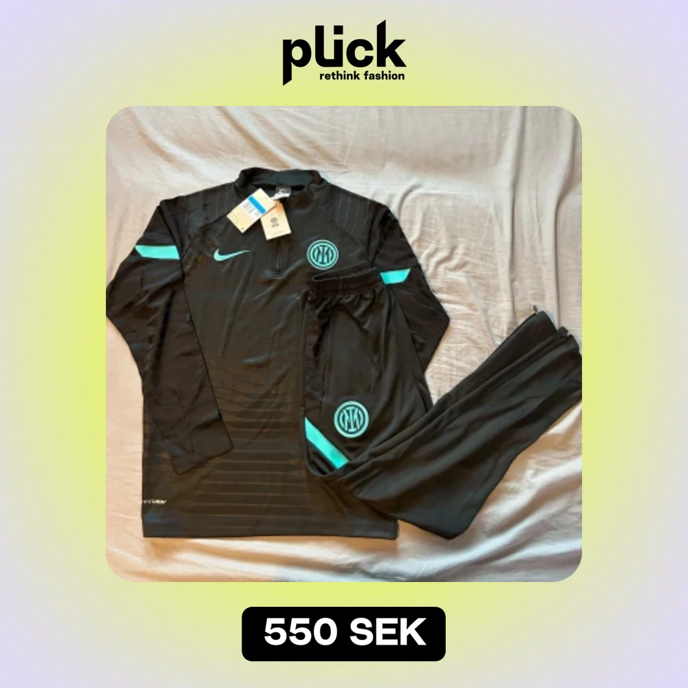Inter tracksuit, svart och blå, storlek M men passar även L. Säljer pågrund av att den är för stor för mig. Skriv för mer bilder osv…..