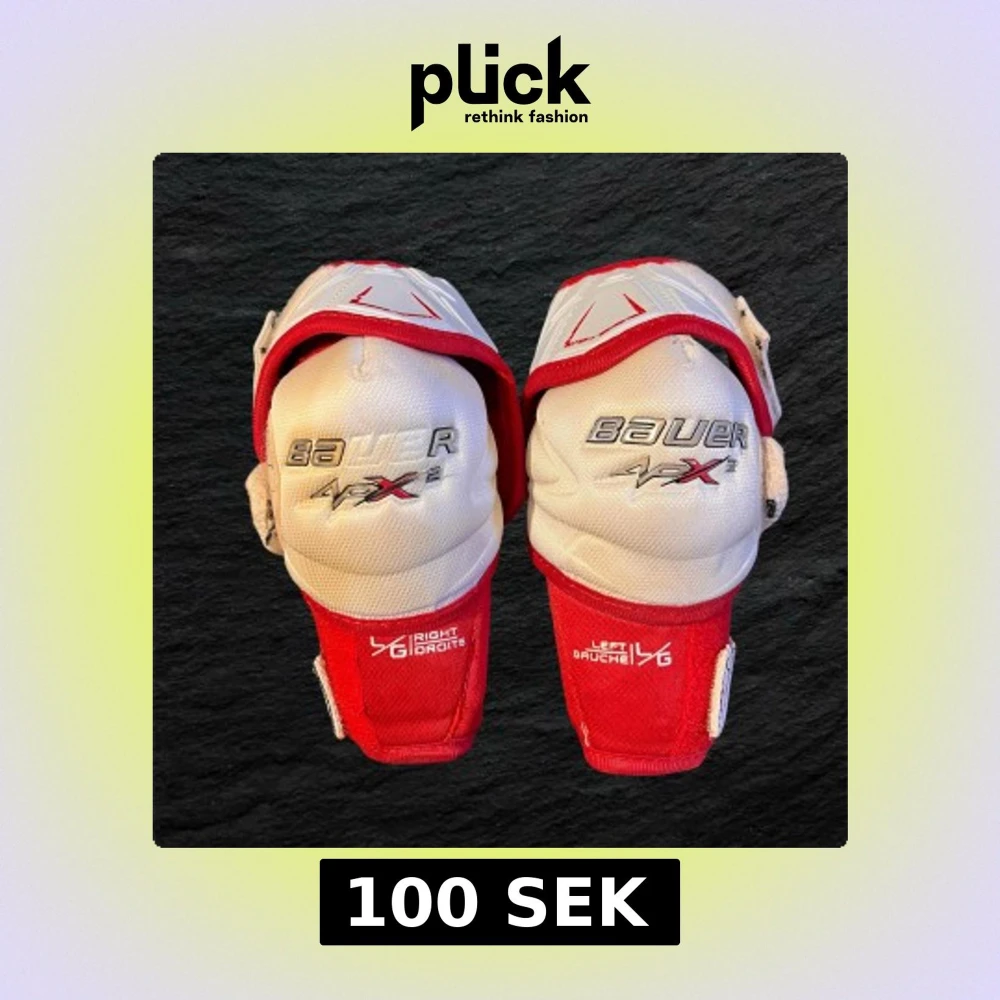 Säljer ett par Bauer Vapor APX2 armbågsskydd i storlek Jr-L. De är vita och röda med justerbara kardborreband och extra skydd runt armbågen. Perfekta för hockey. Snygg design och bra passform för dig som vill ha grymt skydd på isen.
