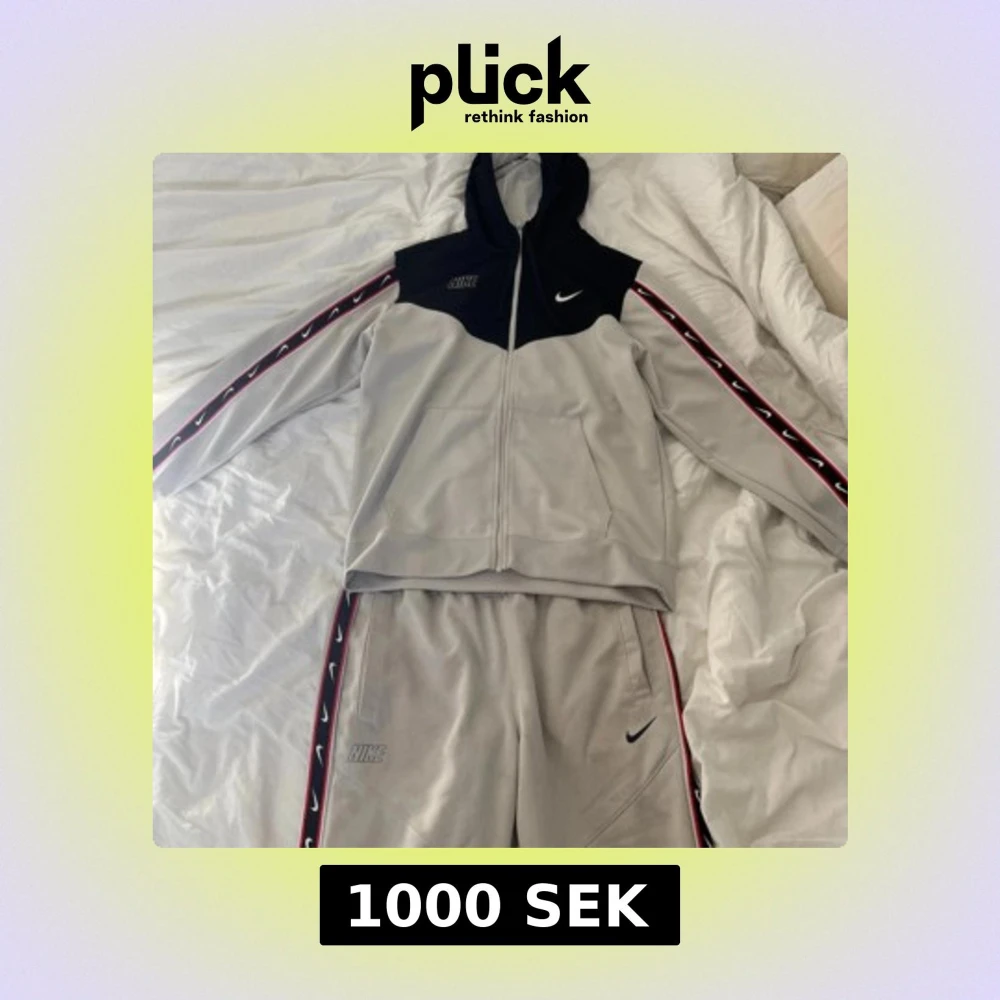 Snygga grå mjukisbyxor från Nike med svarta och röda logoband längs sidorna. Byxorna har elastisk midja, fickor och Nike-logga framtill. Materialet är mjukt och skönt, perfekt för chill eller träning. Matcha med hoodie för en komplett look.