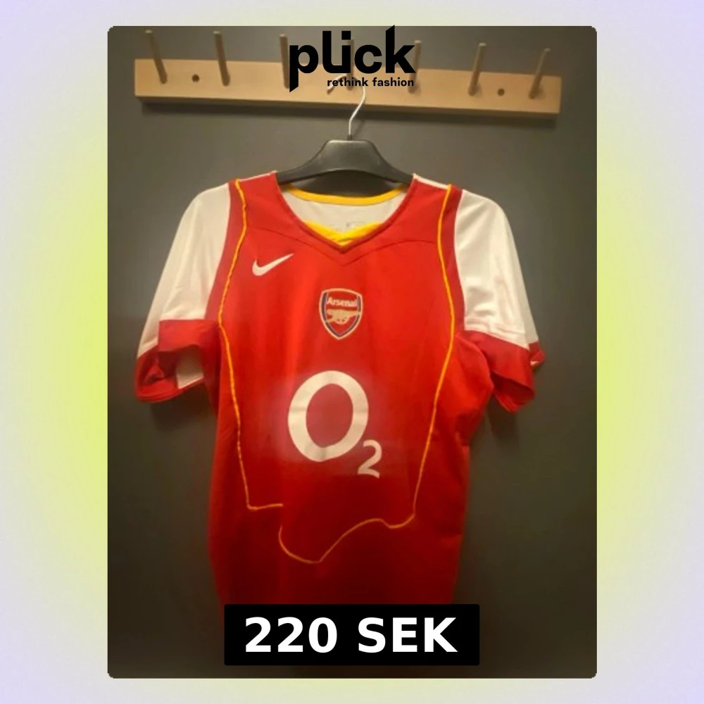 Säljer en klassisk Arsenal matchtröja från Nike med O2 sponsortryck och Henry 14 på ryggen. Tröjan är röd med vita ärmar och gula detaljer, har klubbmärke på bröstet och är tillverkad i lätt polyester. Perfekt för dig som älskar fotboll och Arsenal!