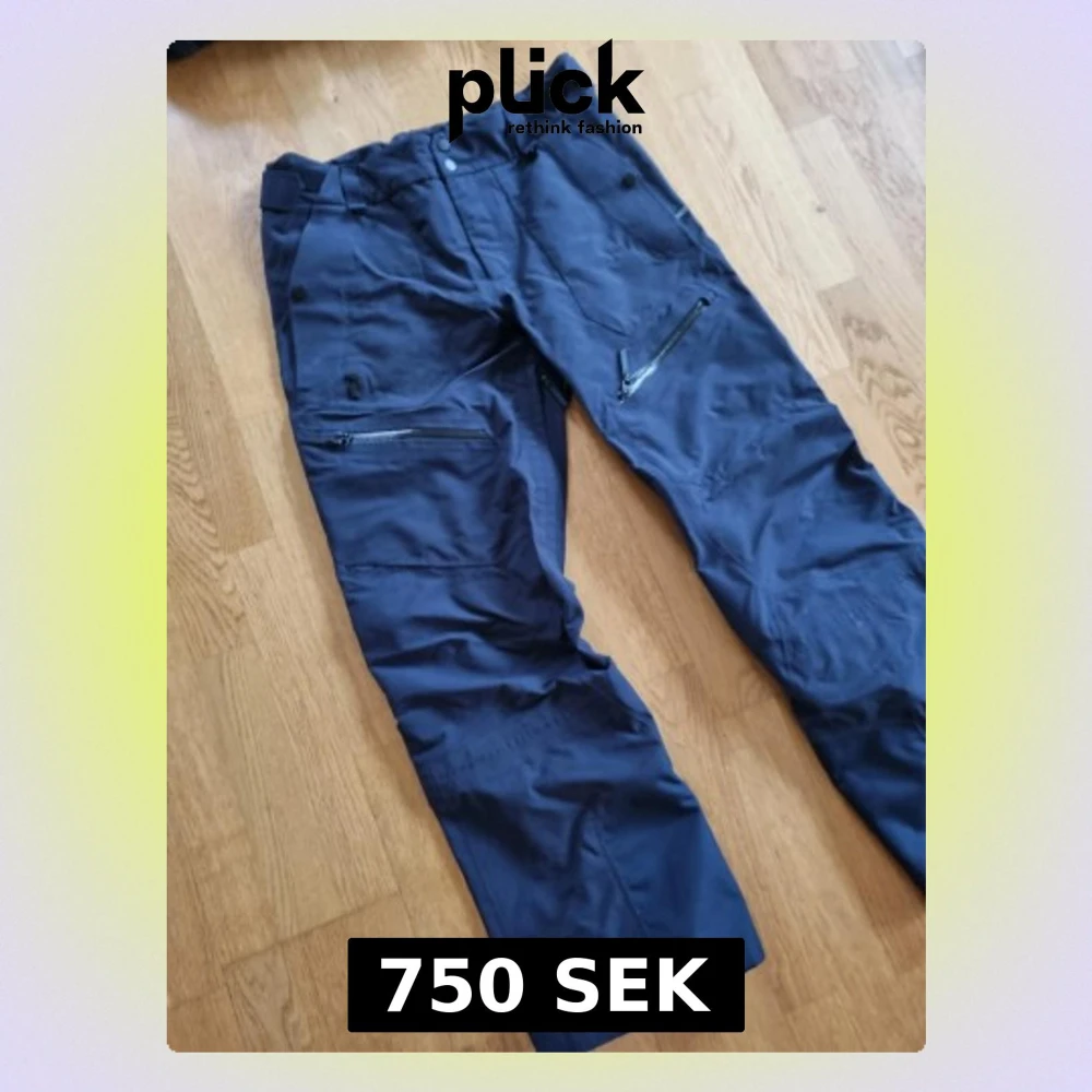 Säljer ett par mörkblå täckbyxor från Peak Performance i storlek M. Byxorna har flera praktiska fickor med dragkedja, förstärkta benslut och är gjorda i slitstarkt syntetmaterial. Perfekta för kalla dagar och utomhusaktiviteter.