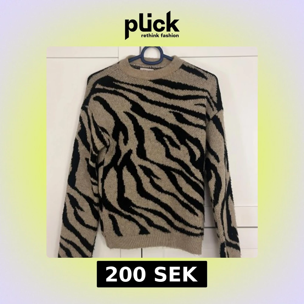 Säljer en cool stickad tröja från ONLY med ett djärvt zebramönster i beige och svart. Perfekt för att ge din outfit en trendig touch!