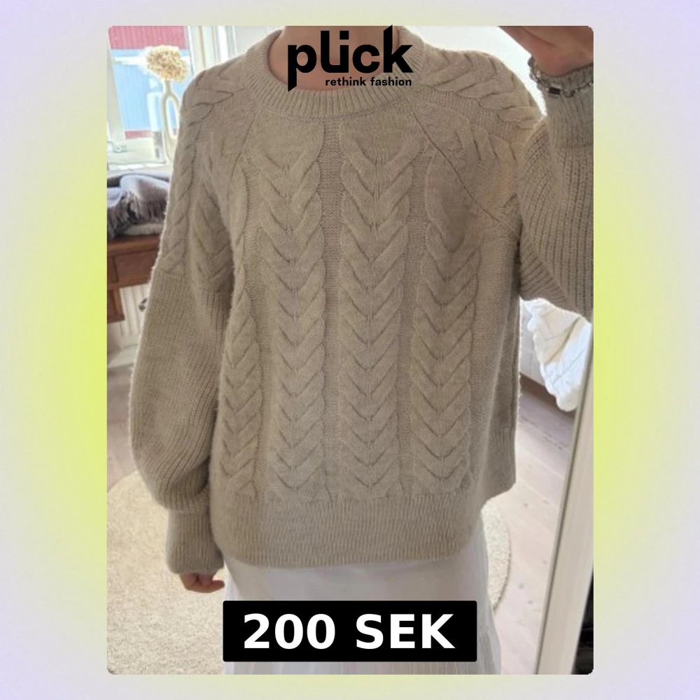 Mysig beige kabelstickad tröja med rund halsringning och breda ärmar 💕 Tröjan har inga defekter och har används fåtal gånger 💓
