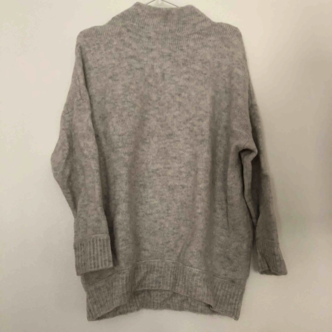 Väldigt mysig stickad ljusgrå tröja från h&m. Är längre i passformen. Skulle säga att den passar xs-m. Pris kan diskuteras