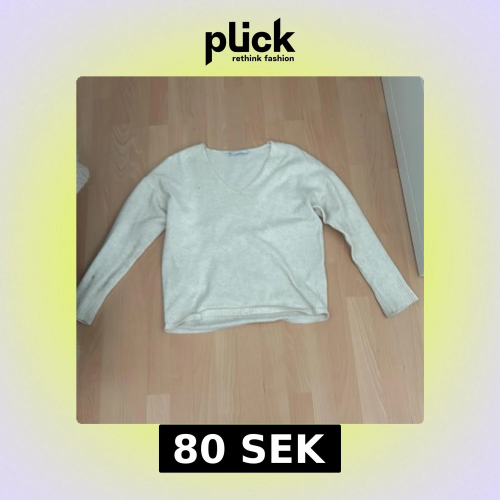 Beige stickad tröja från ONLY med v-ringning och långa ärmar. Tröjan har ribbade muddar vid ärmsluten och en enkel, klassisk design som passar perfekt till jeans eller kjol. Mjuk och skön för kyligare dagar.