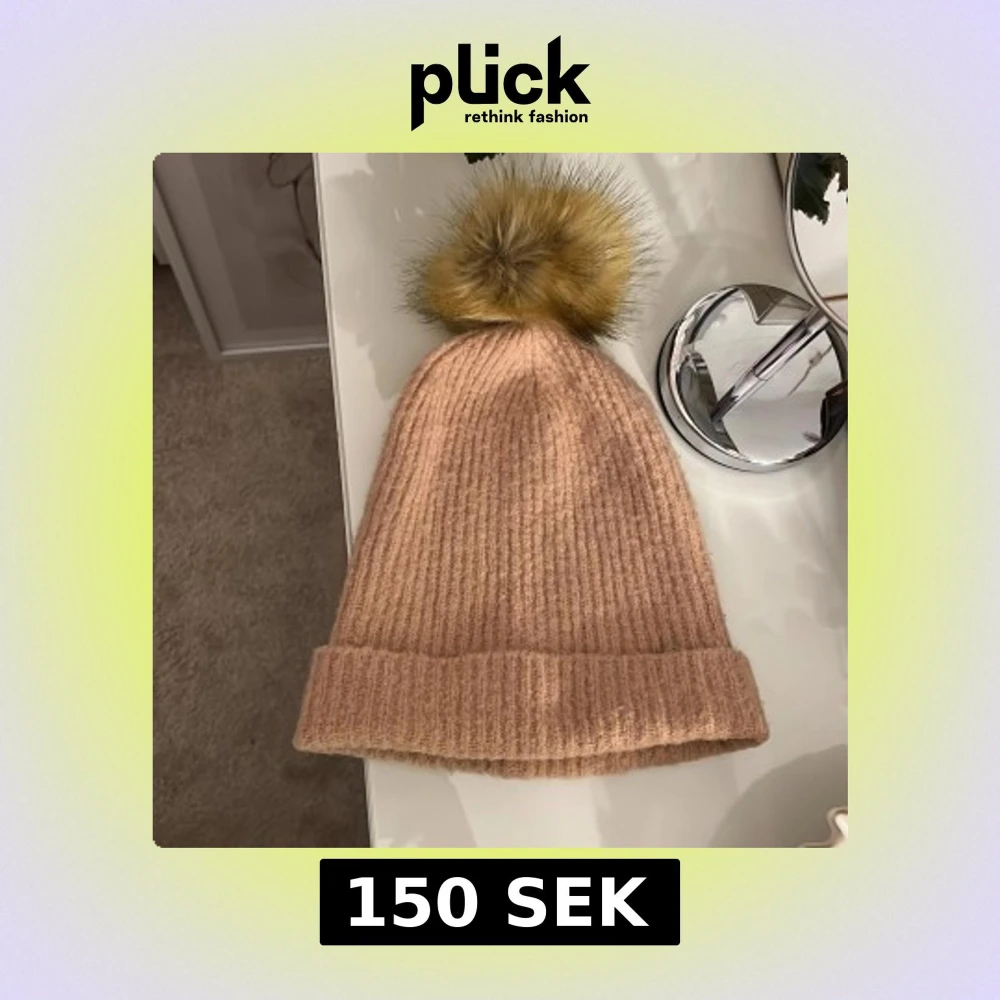 ribbad mössa med pälsboll från ONLY