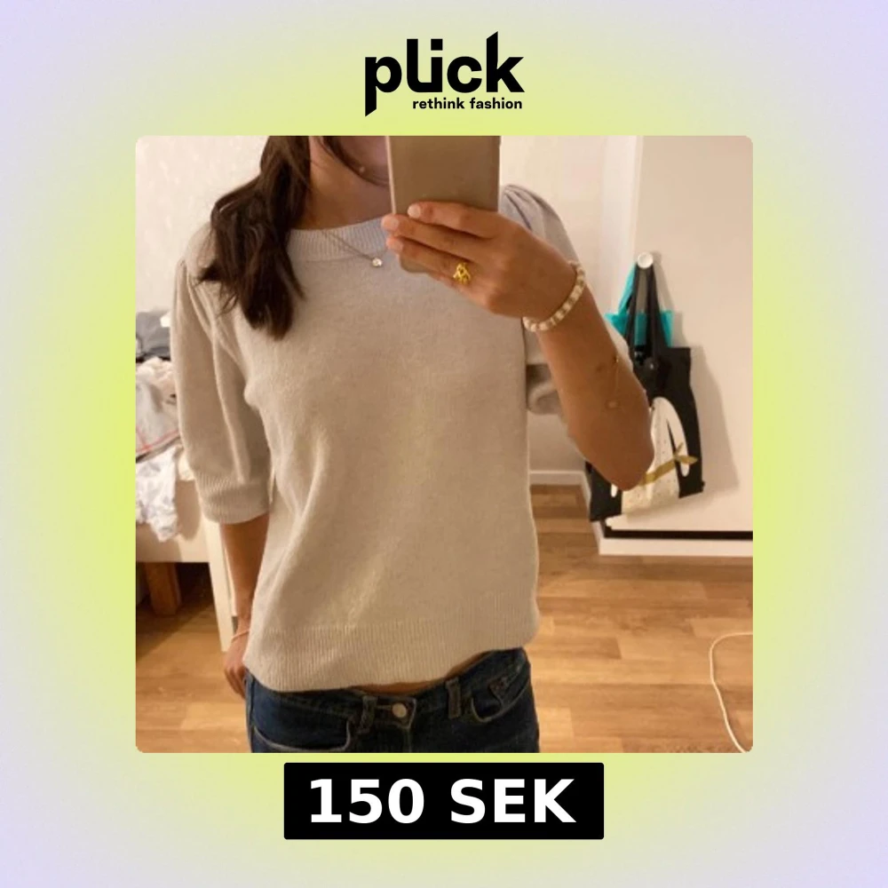 Superfin ljusbeige stickad tröja från ONLY med ribbad rund halsringning och halvlånga ärmar. skriv för mer info eller bilder 🫶🏻