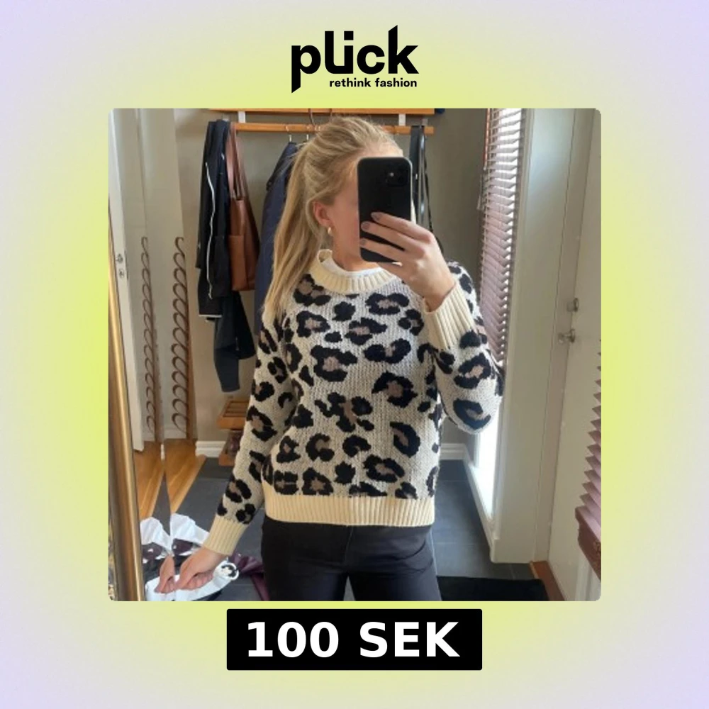 Säljer en snygg stickad tröja från ONLY med leopardmönster i svart och beige. Tröjan har en rund halsringning och långa ärmar. Perfekt för att ge din outfit en trendig touch 🐆