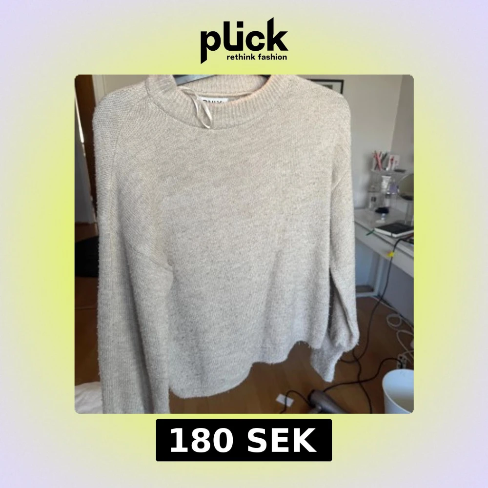 Mysig beige stickad tröja från ONLY i storlek XS. Tröjan har en rund halsringning, ribbade muddar och är långärmad. Perfekt för lager-på-lager under kyliga dagar och har en enkel, clean look som funkar till allt.