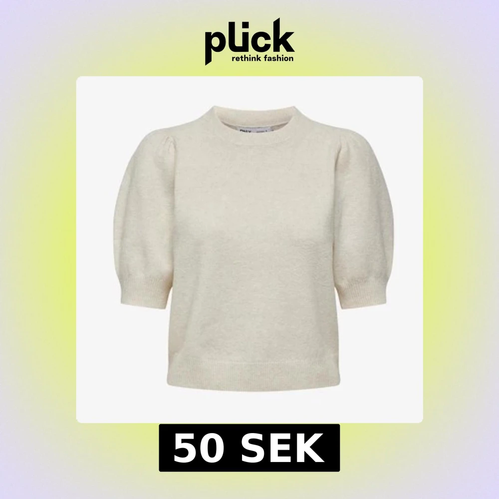 Superfin beige stickad tröja från ONLY med puffiga korta ärmar och rund halsringning. Bra skick och säljer för endast 50 kr! 💕☺️