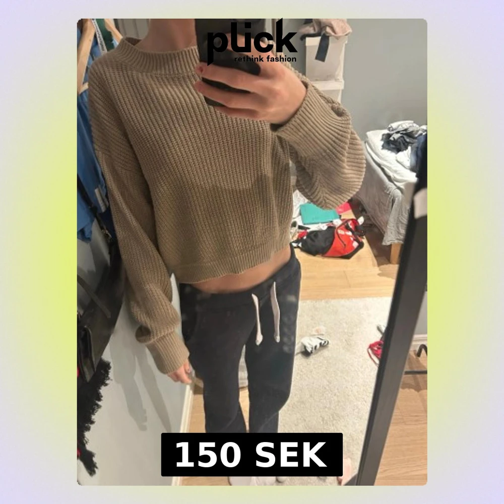 Säljer en beige stickad tröja med bred ribbad halsringning och långa ärmar. Tröjan har en avslappnad passform och är perfekt för lager på lager. Materialet känns mjukt och mysigt, och färgen är lätt att matcha med allt. Pris kan diskuteras!❤️
