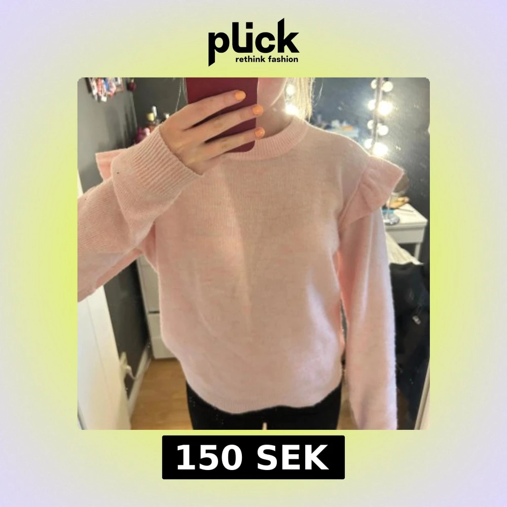 Superfin ljusrosa stickad tröja med volangdetaljer på axlarna. Den har blivit lite nopprig på armarna så därav priset. Köpte på barnavdelningen i en storlek 170 men passar mig som vanligtvis brukar ha S🩷🩷🩷🩷🩷