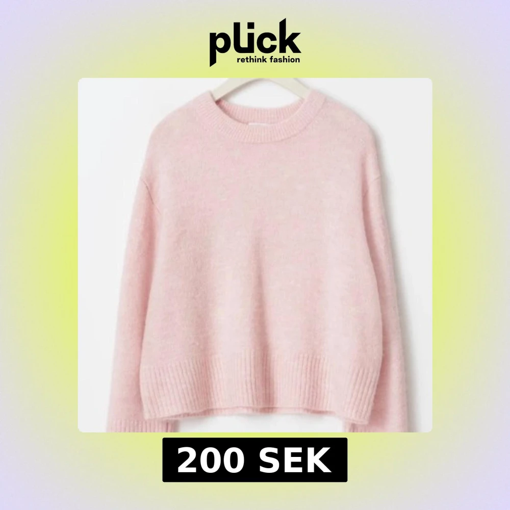 Supermysig ljusrosa stickad tröja med rund hals och ribbade muddar vid ärmslut och nederkant. Perfekt för att hålla sig varm under kyliga dagar och passar till både jeans och kjol. Enkel och stilren design som är lätt att matcha.