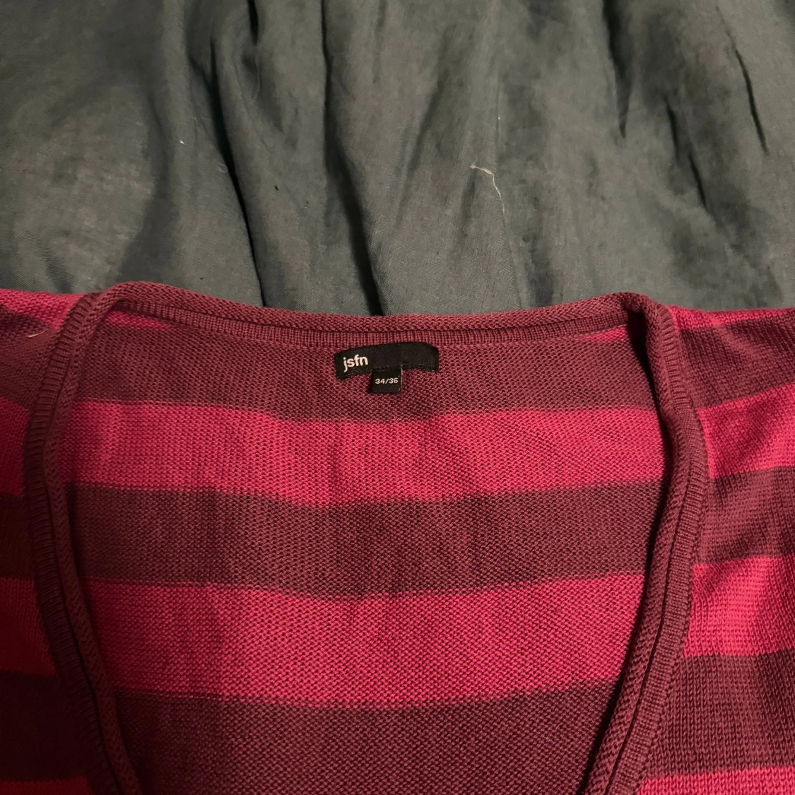 Stickad lång topp från JSFN i rosa och vinröda breda ränder. Modellen är ärmlös med rund halsringning och har en knyt-detalj i midjan. Perfekt för dig som gillar en avslappnad men ändå snygg stil. Passar s-m, sitter bra på mig med storlek 40.