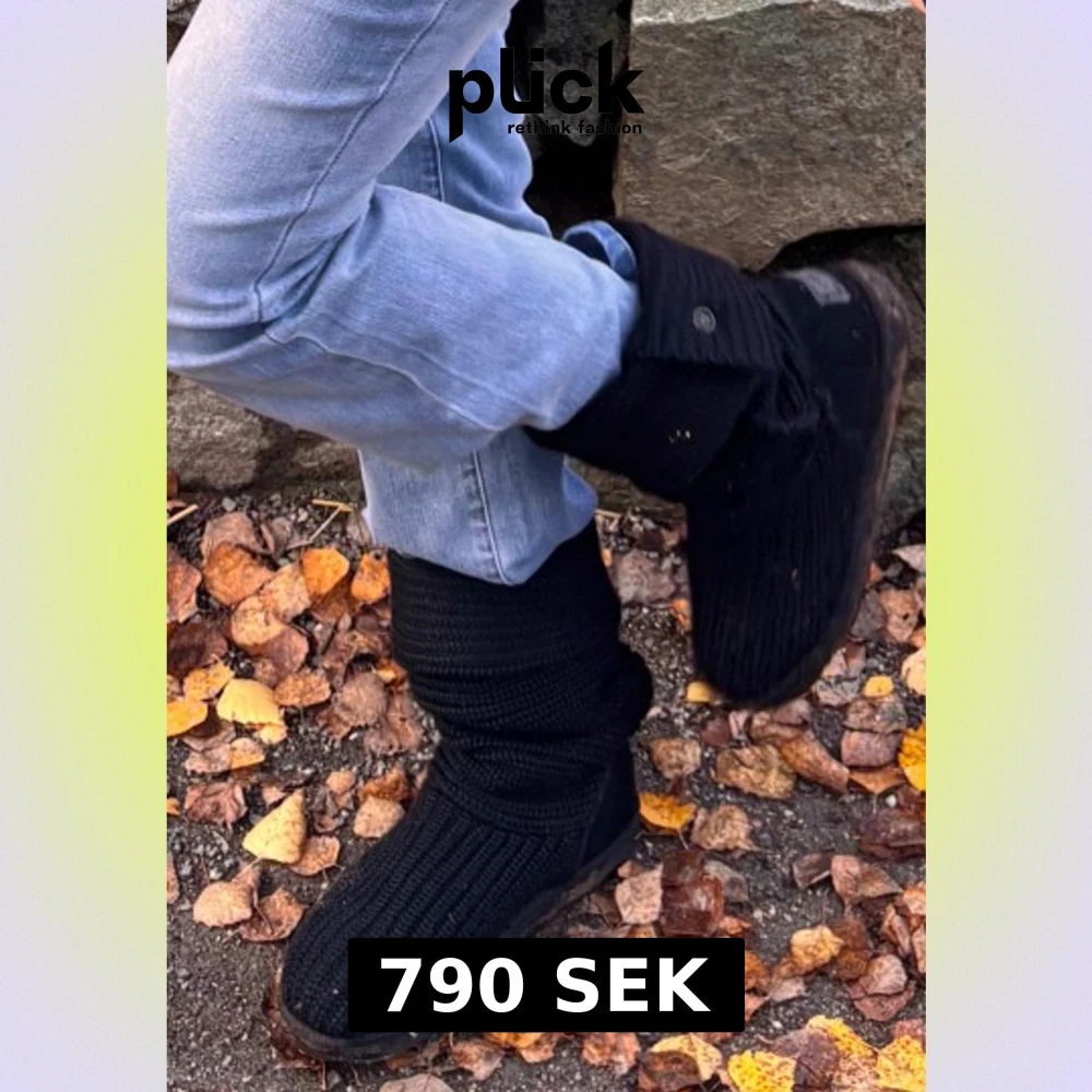 Säljer ett par svarta boots med stickad yta och platt sula. Skorna är bevarade sedan 2013 och de går även att vinkla ut så de blir längre men jag har vinklat ner de på bilden! Detta är riktiga 2000s tals BOOTS och från märket UGG❤️