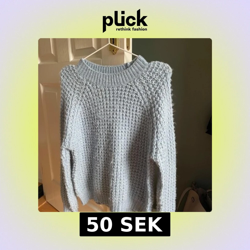 Mysig ljusblå stickad tröja från 157 med grovstickad struktur och bred ribbad krage. Perfekt för kyliga dagar och enkel att matcha med jeans eller kjol. Långärmad modell med avslappnad passform.