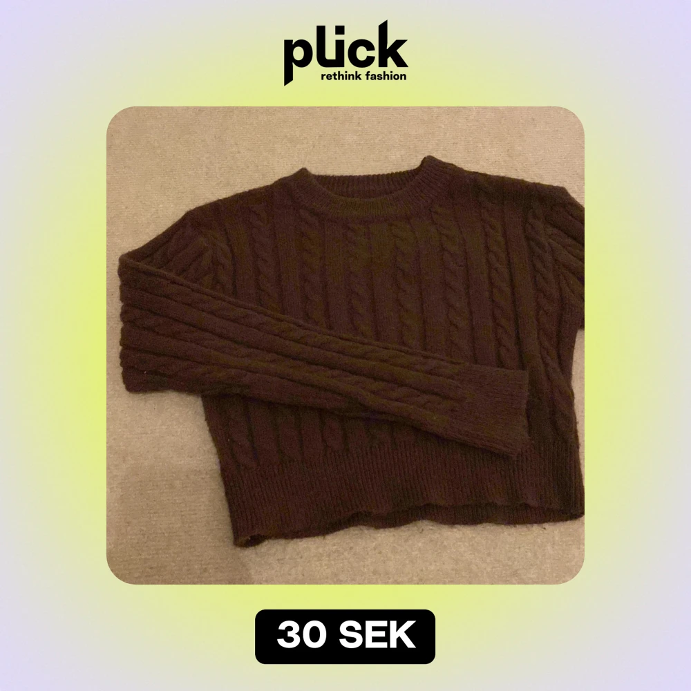 Säljer en mysig brun stickad tröja med kabelstickat mönster. Perfekt för kyliga dagar med sin varma och bekväma design. Tröjan har långa ärmar och en rund halsringning. Passar perfekt för svarta jeanse och för en liten myskväll !