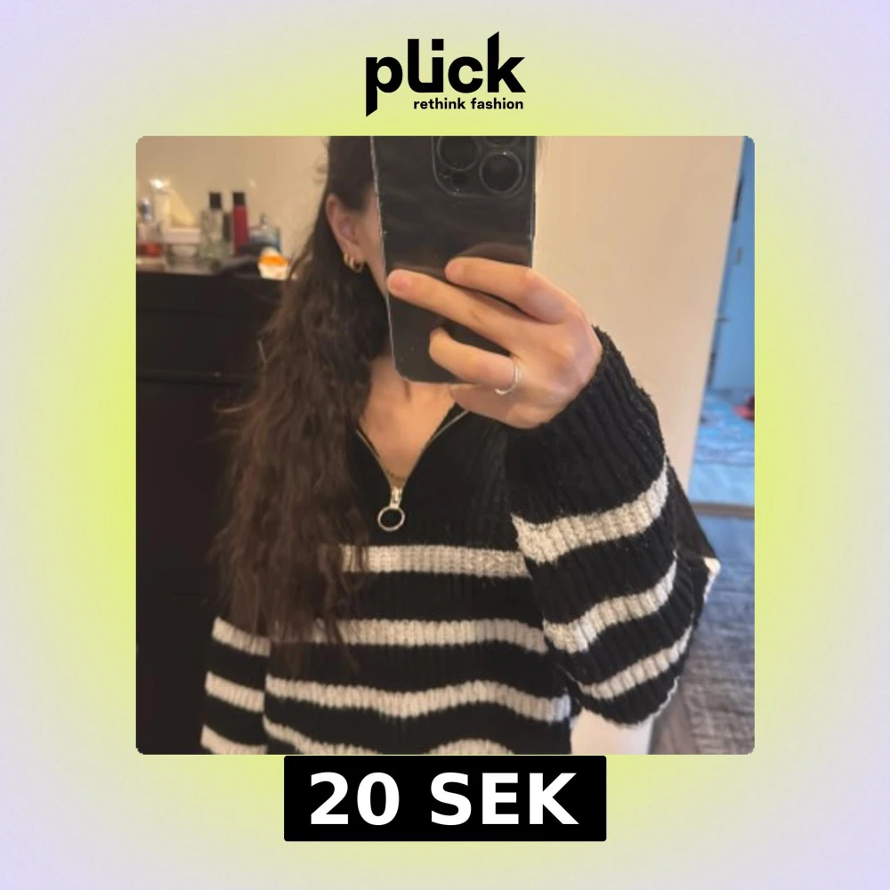 Svart och vit randig tröja med dragkedja