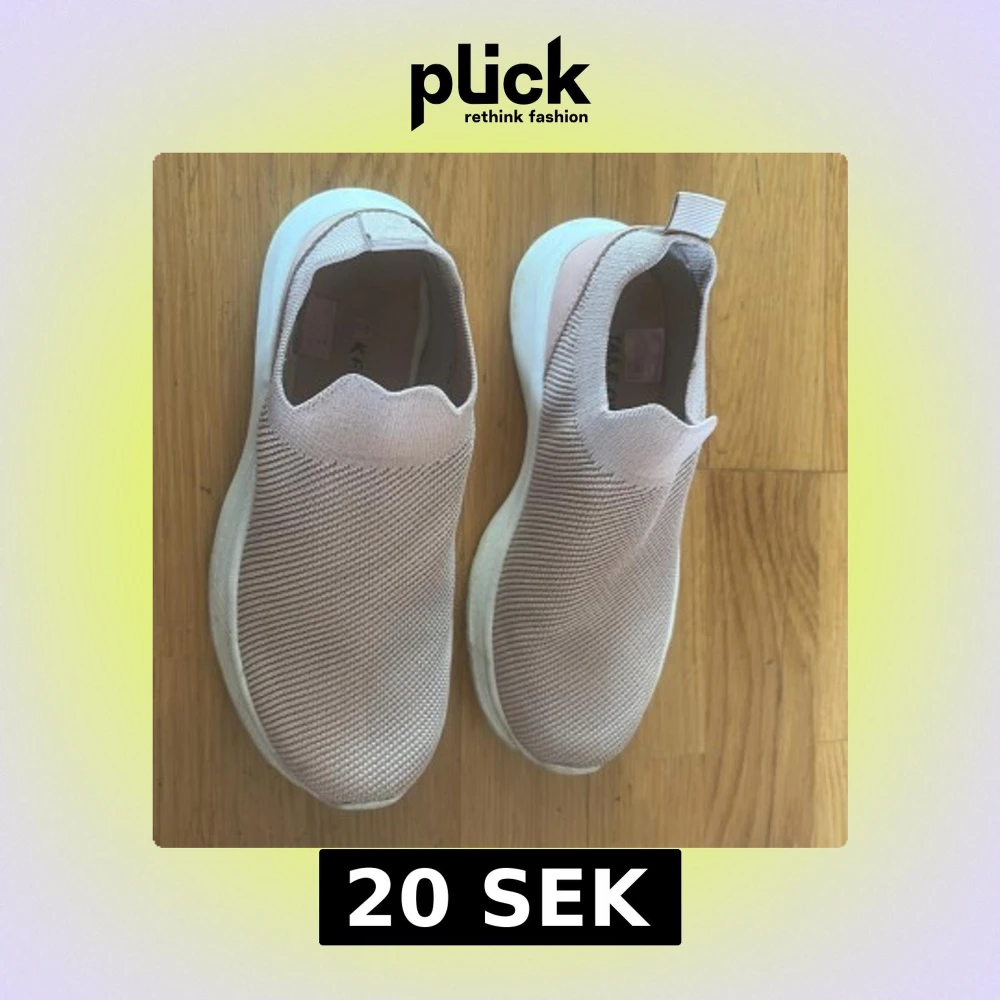 Snygga ljusrosa slip-on sneakers med stickad ovandel och vit platt sula. Skorna har en modern, minimalistisk look och är superenkla att ta på tack vare den elastiska designen. Perfekta för dig som gillar bekväma och stilrena skor till vardags.