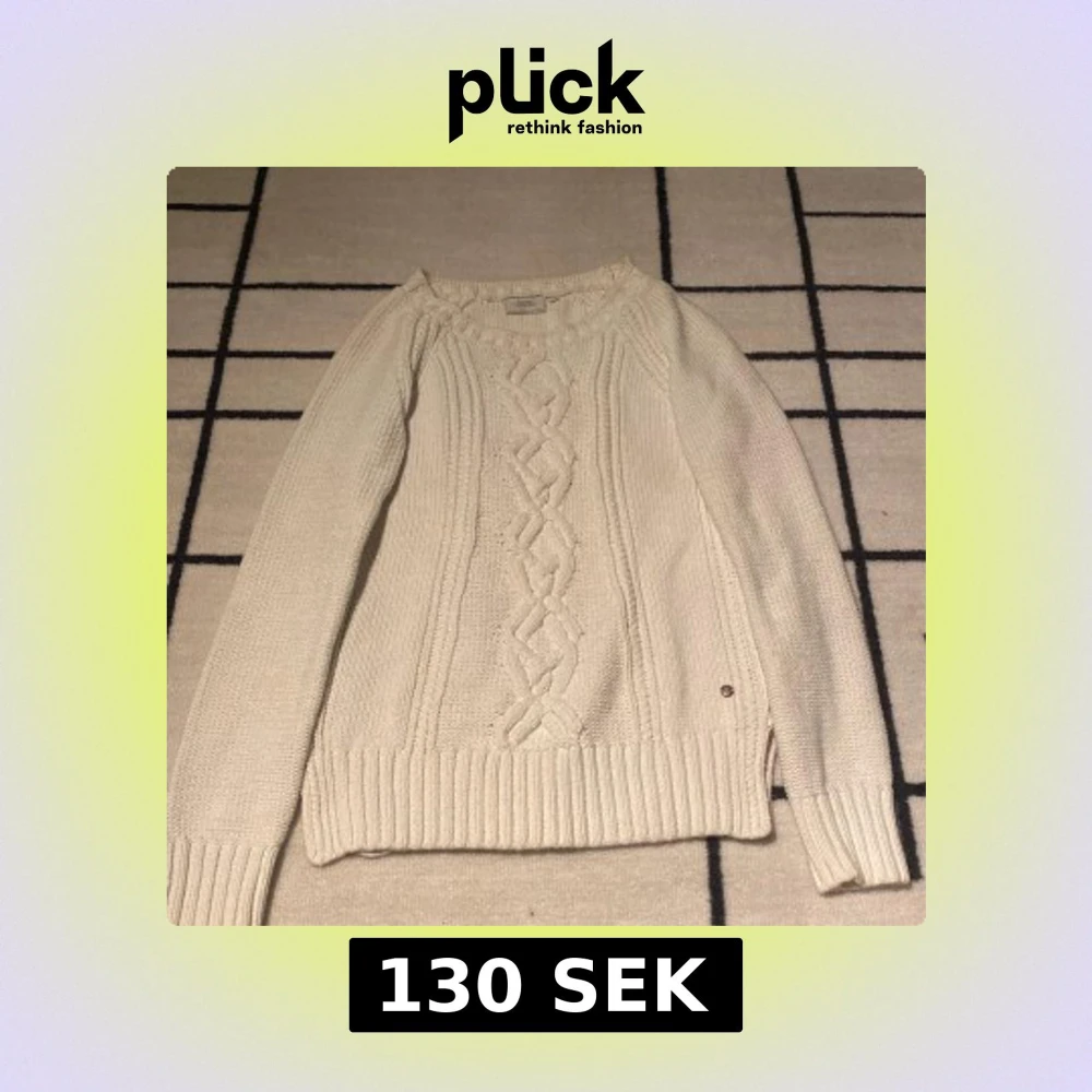 Vit tjockare stickad tröja. Bra skick och inga ”skador” Passar både S-M