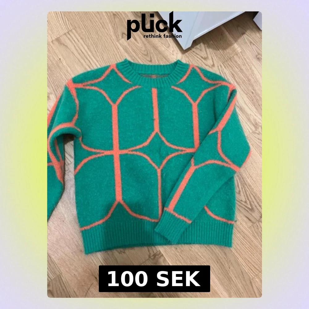 Cool stickad tröja i grönt med grafiskt orange mönster. Tröjan har rund halsringning, ribbade muddar och är gjord i ett mjukt material som känns skönt mot huden. Perfekt för dig som vill sticka ut med färg och stil.