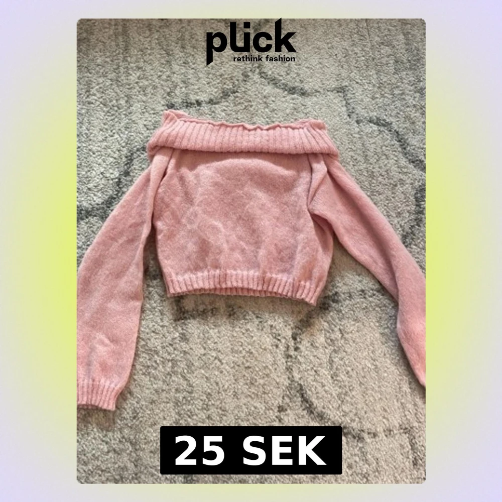 Söt rosa stickad tröja med off shoulder-design och bred ribbad kant upptill. Tröjan har långa ärmar och ribbade muddar vid ärmslut och nederkant. Perfekt för dig som gillar en trendig och avslappnad stil.