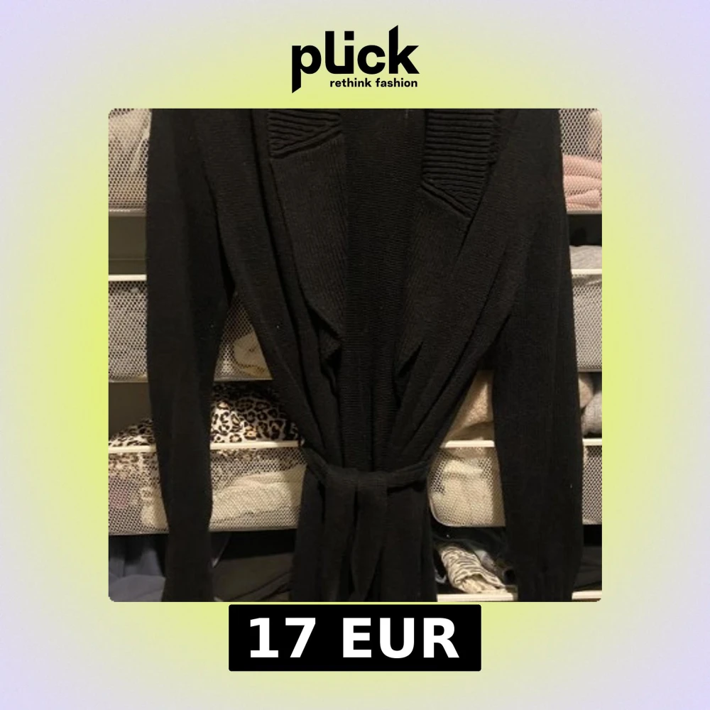 Elegant svart stickad kappa från Sisley med knytband i midjan. Den har långa ärmar och en stilren design som passar perfekt för kyligare dagar.