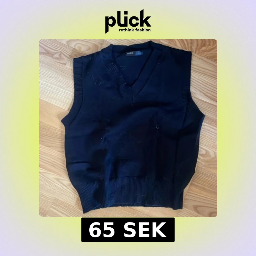 Snygg svart stickad väst från Shein med v-ringning och ribbade kanter. Perfekt för lager-på-lager-stil och passar till många olika outfits.
