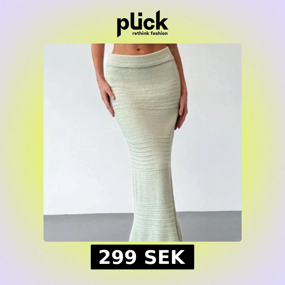 Säljer en ljusgrön stickad långkjol med bred resår i midjan. Kjolen har en åtsittande passform upptill och faller snyggt längs benen. Perfekt för dig som gillar en mjuk och bekväm stil. Helt ny aldrig använd