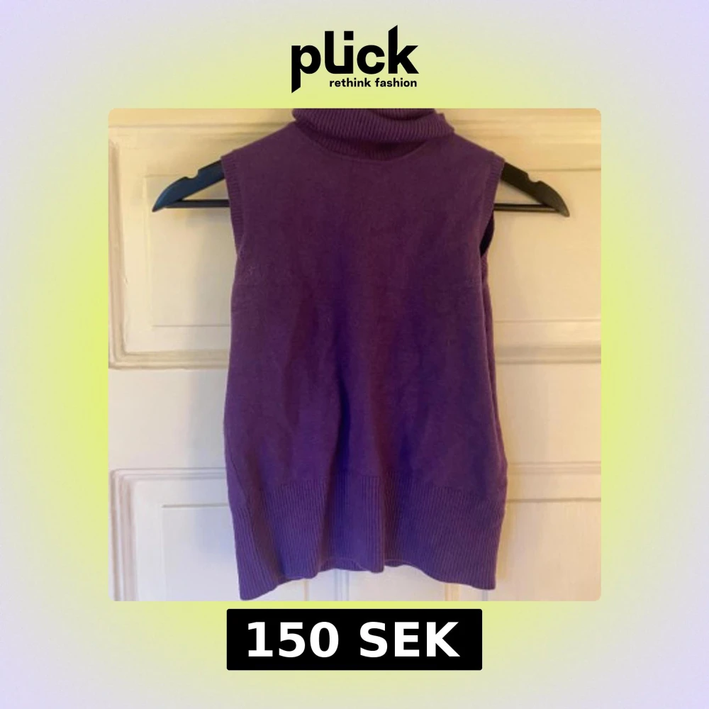 En lila väst med polokrage och bred ribbad kant nedtill. Bra skick i storlek XS/S med en viss defekt vid ärmarna, se bild